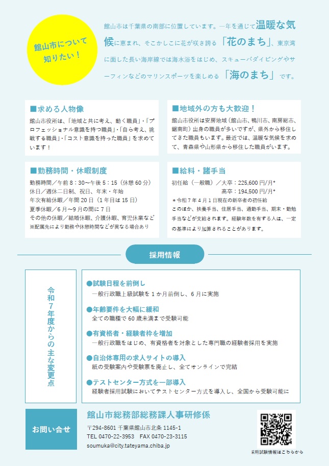 館山市役所では12月23日まで市役所の正職員を募集しております。